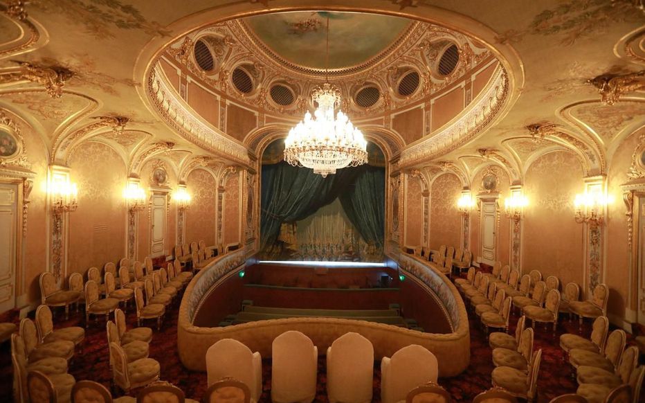 퐁텐블로 성의 황실 극장은 원래 1853년에서 1856년 사이 나폴레옹 3세의 요청에 따라 건축가 엑토르 르퓌엘(Hector Lefuel)이 더 이상 나폴레옹 3세를 만족시킬 수 없었던 오래된 Comédie(극장)를 대체해 개조한 것입니다. 황실 극장에서는 약 15회의 공연만 오르게 되었고, 제2제정의 몰락 이후 폐쇄되었습니다. 오래 동안 그대로 버려져 있다가 아부다비의 후원으로 천만 유로에 달하는 대규모 복원이 이루어졌습니다. 원래 사용했던 천, 장식, 물건 등 최대한 보존한 뒤 2019년에야 복원이 끝났고, 가이드 투어를 통해 대중들에게 다시 공개되었습니다.